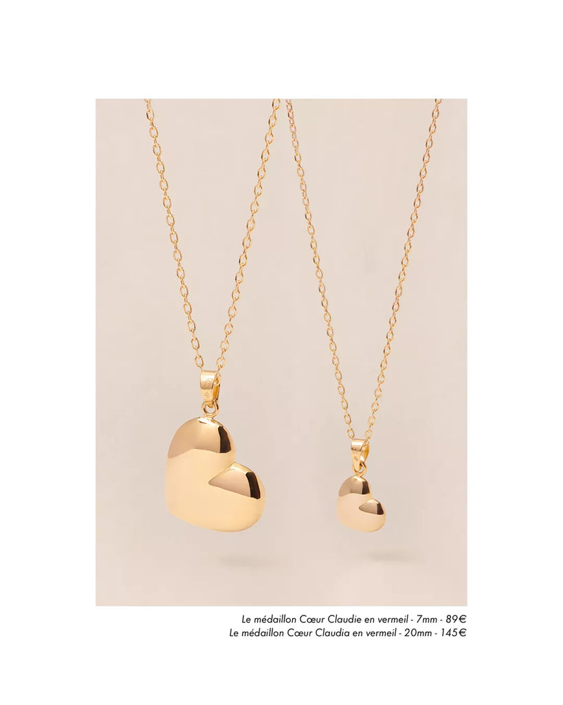 Notre pendentif Cœur, bijou iconique d’émoi émoi est enfin disponible en vermeil. Une bombe de love, qui fera son petit effet porté seul au bout d'une chaîne, collé-serré à l'initiale qui fait battre votre coeur, ou monté sur une créole. Deux formats ultra légers : le petit coeur bombé Claudie 7 mm (1,4 grammes) ou le grand coeur bombé Claudia 20 mm (1,9 grammes).
