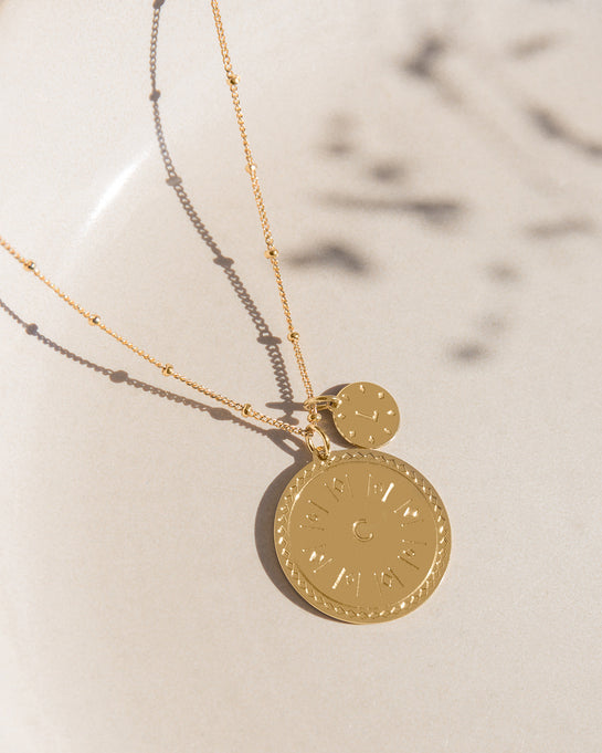 - Médaille initiale gravée, ronde, disponible en 10, 15, 20 et 25mm