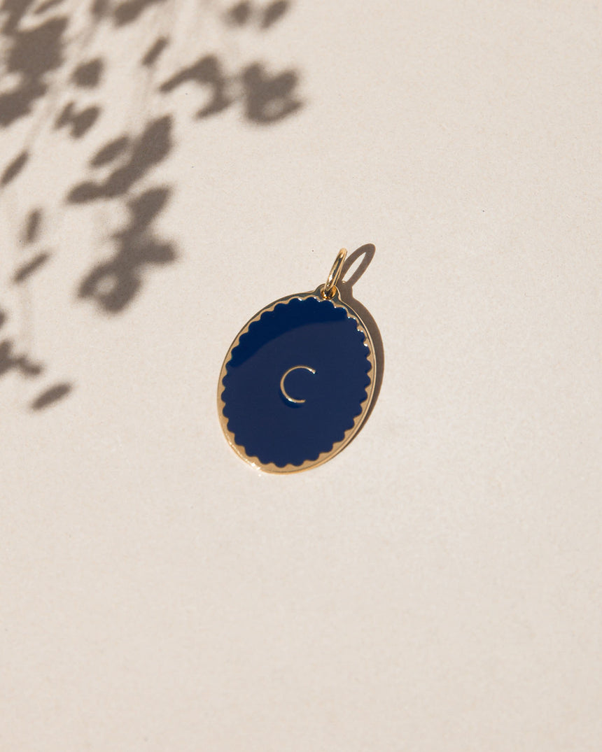 La médaille Initiale ovale - bleu nuit - 20mm